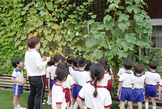 花壇や菜園もあり、四季の自然にふれながら好奇心を育てます。