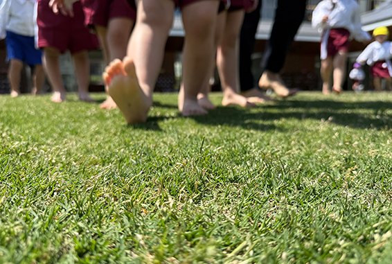 素足で駆け回る芝生の園庭