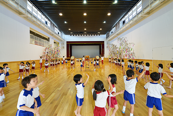 行事も遊びも楽しめる広い体育館