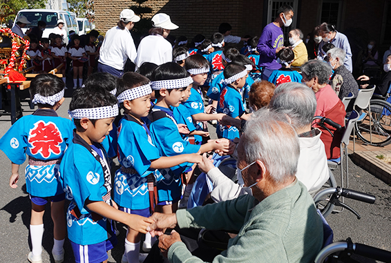 隣接している高齢者施設との行事を通して、おじいちゃん・おばあちゃんと自然にふれあいます。
