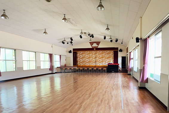 国際規格のバスケットコート約1面分の広さがある体育館には、大型スクリーンや音響設備、空調も完備されています。