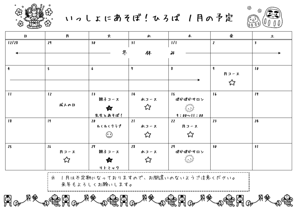 🎅まずは予定をチェック!令和8年1月のいっしょにあそぼ!ひろばのカレンダー🎄